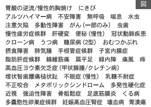 ハーバード大学の進化人類学者・リーバーマン先生は、進化と適応は「健康」のためではなく「繁殖」のために起こることを指摘し、進化のプロセスでのなじみのある刺激が「大きすぎること」と「小さすぎること」そしてかつてはなかった「新しすぎること」によってミスマッチを引き起こす「ディスエボリューション(トレイドオフ)」として以下の47の症例の「非感染性のミスマッチ病」を指摘しました(「人体600万年史(下)」塩原通緒訳:早川書房・2015年)。そして遺伝的に引き継がれる要因と文化的に引き継がれる要因との関係から、農業の発生にともなう変化、そして産業革命以降の工業化に伴う身体運動様式の変化が様々な不適合(ディスエボリューションの ”悪循環”)を引き起こすことを指摘しています。