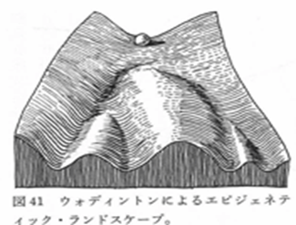 ウォディントン(1975)のエピジェネティック・ランドスケープ(倉谷滋:進化する形~進化発生学入門~、講談社、2019)