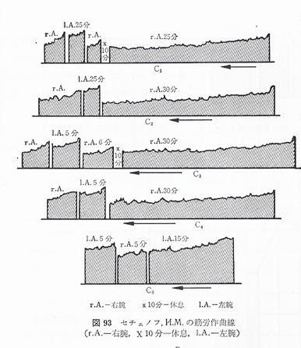 これは1930年代に旧ソ連のセーチェノフ(パブロフの先生にあたるらしい)が提唱した「積極的休息(セーチェノフ現象ともいわれる?)」の概念で、図はクレストフニコフの「スポーツの生理学」(1978)で引用されたデータです。